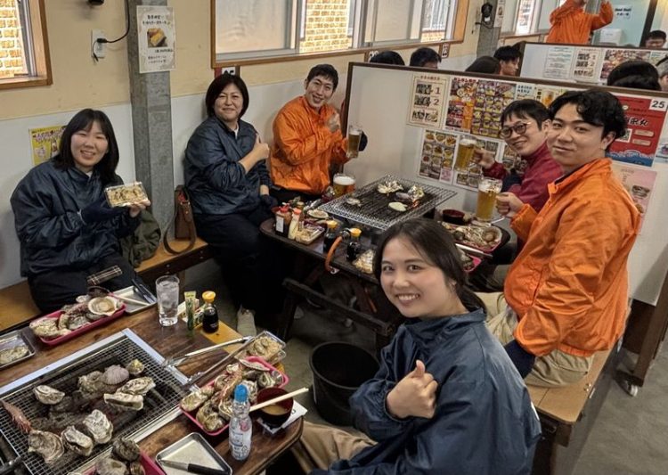 「道中から皆が飲みながら昔話をしていて楽しい雰囲気が広がっていました。牡蠣小屋では、他の席で焼いていた牡蠣の殻がはじけ、頭に降ってくる場面もあり、牡蠣って爆発するんだ…と驚きました!」