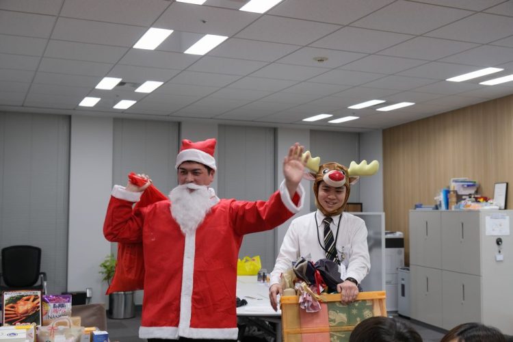 「美味しい料理やお酒、楽しいプレゼント企画もあり、とても楽しい会でした。サンタとトナカイが今年もやってきて、子供たちも大喜び!大人も笑顔になりました。また、普段一緒に仕事をしないメンバーとも話ができて、とても有意義な時間でした。」